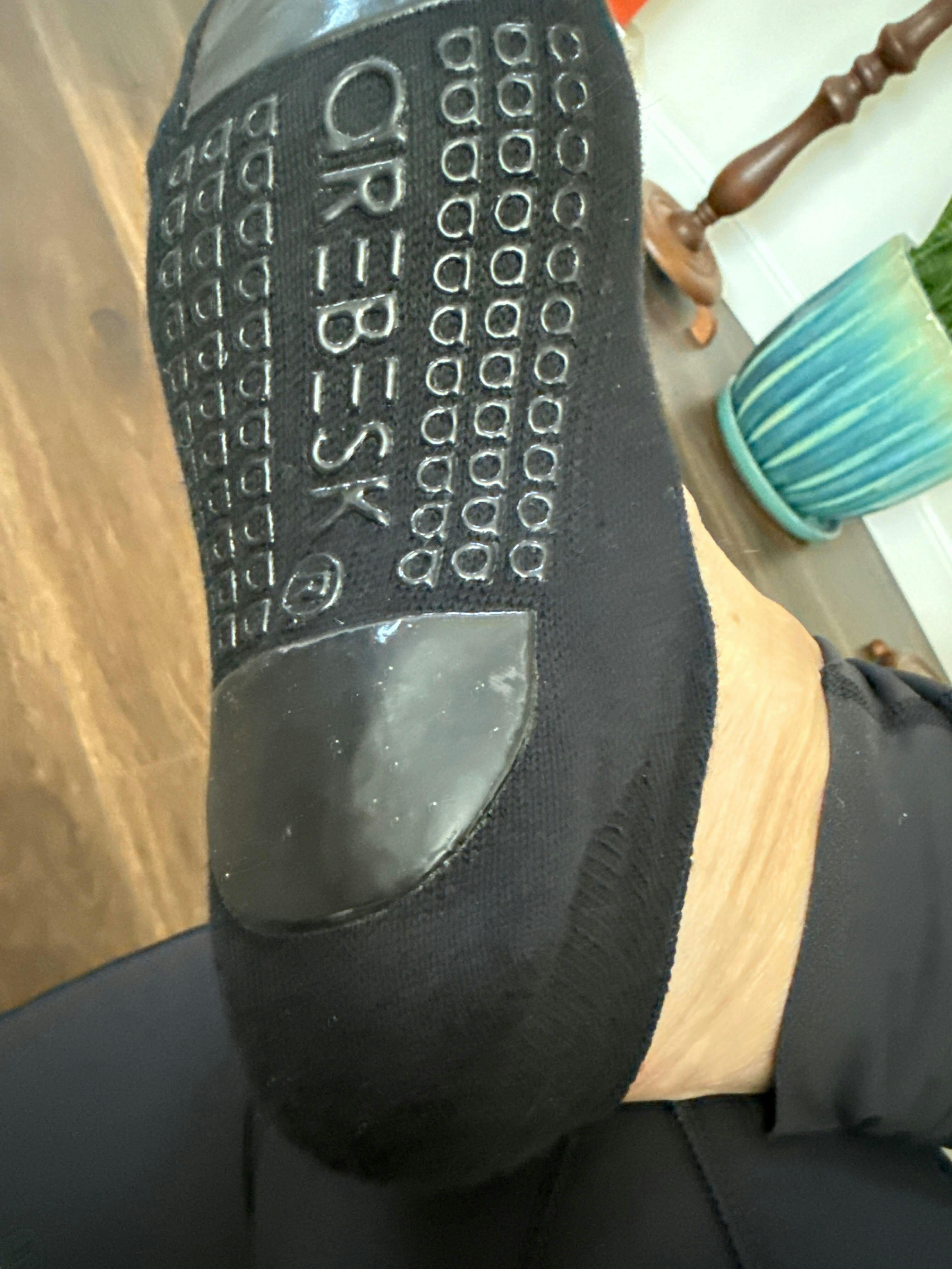 - Silicone tab inside heel of grip socks